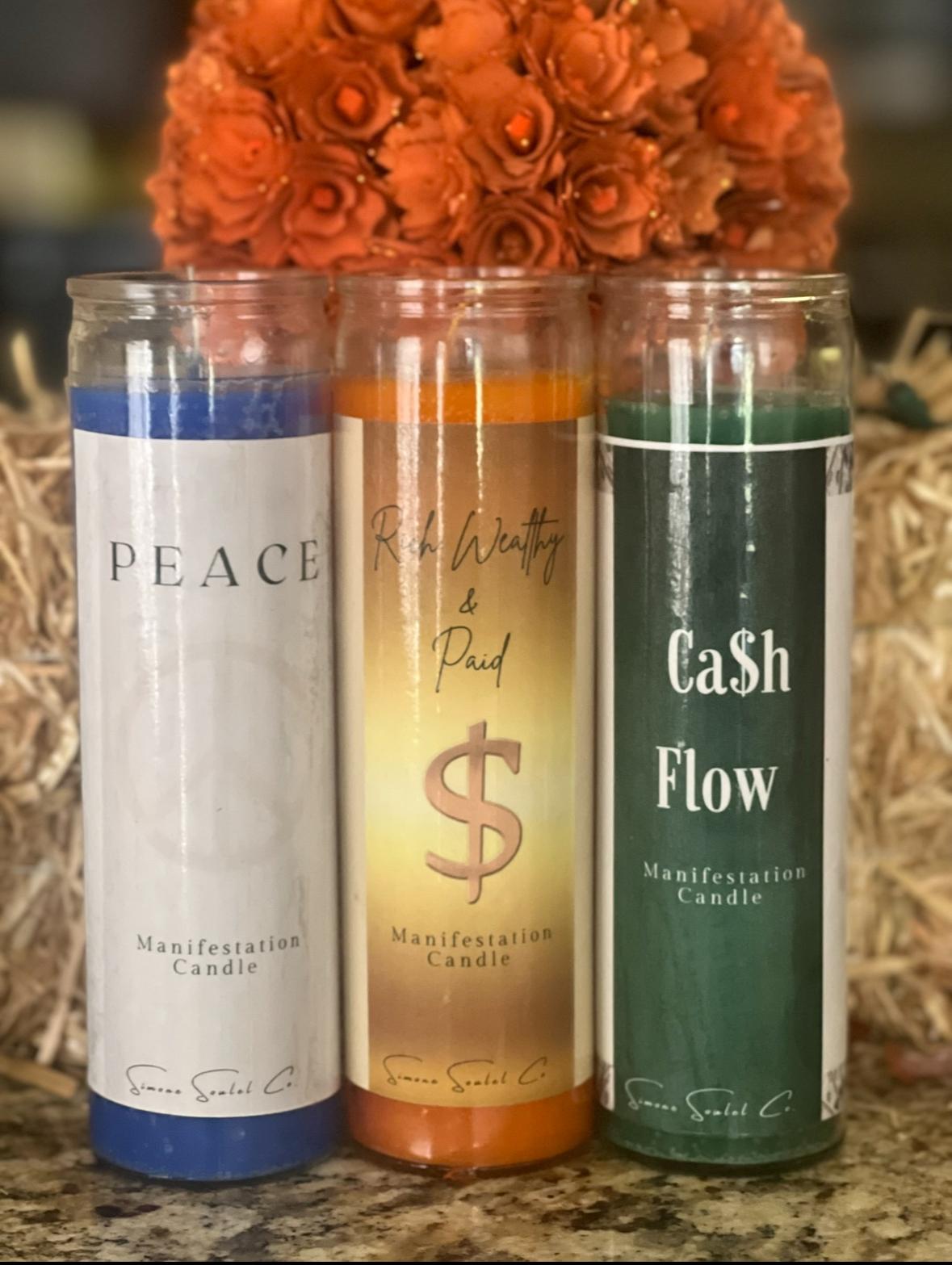 Our candles are dressed and blessed with intention oils, glitter, and our in house Egyptian Fermented intention oils. This helps you set your intention and release them into the Universe to Manifest. Book a reading so we can help you pick the best Manifestation combo to get to your intentions quickly !